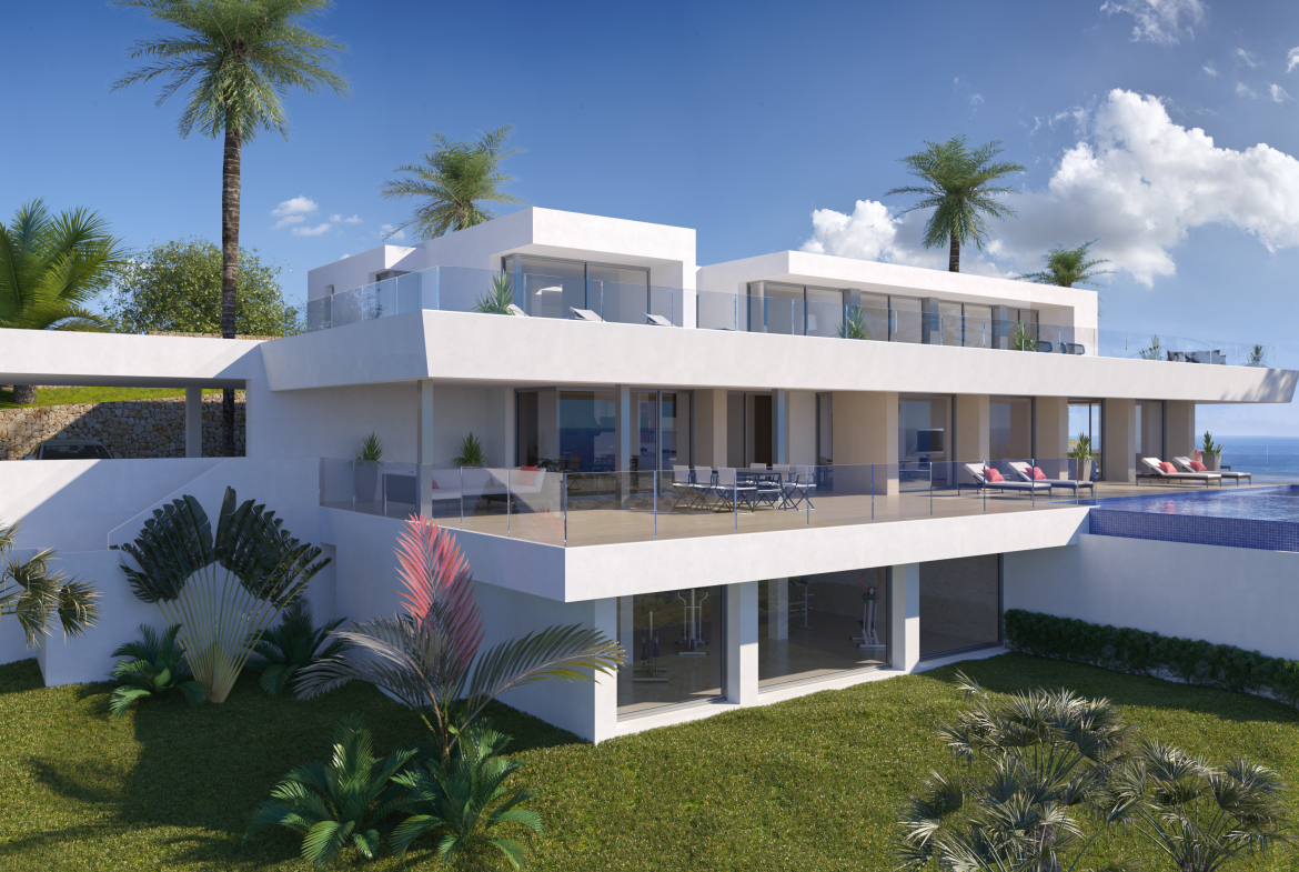 En una de las parcelas más amplias del residencial Jazmines, en Cumbre del Sol, se sitúa Villa La Cala, una vivienda de alto nivel diseñada para ofrecer amplitud, eficiencia y vistas panorámicas al Mediterráneo. Con una parcela de 2.493 m², esta propiedad destaca por su privacidad, su orientación y sus espacios concebidos para maximizar la luz natural.
