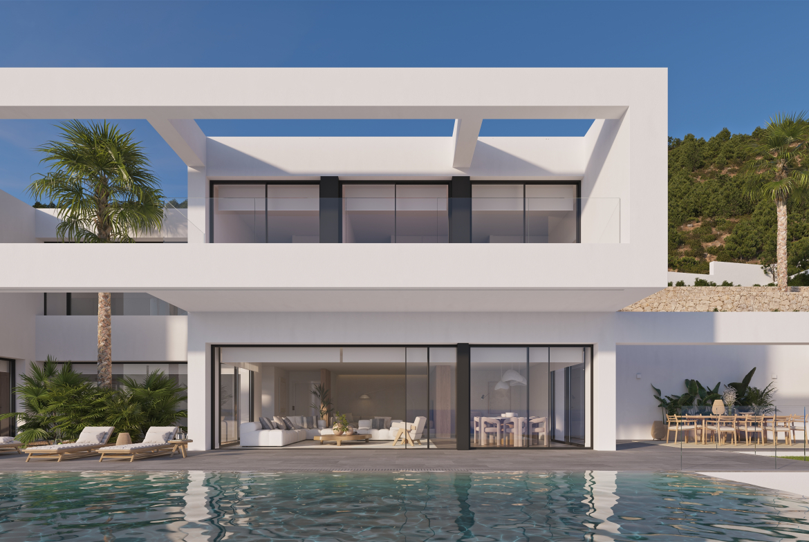 Villa Irati: Architecture, sea and nature in perfect harmony. Situated in one of the most exclusive areas of the Benissa coast, within the prestigious Racó de Galeno estate, Villa Irati embodies the ultimate expression of modern Mediterranean living. This contemporary house seamlessly integrates with the natural surroundings, between Moraira and Calpe, providing a privileged view of the sea and the native vegetation of Costa Blanca Norte.