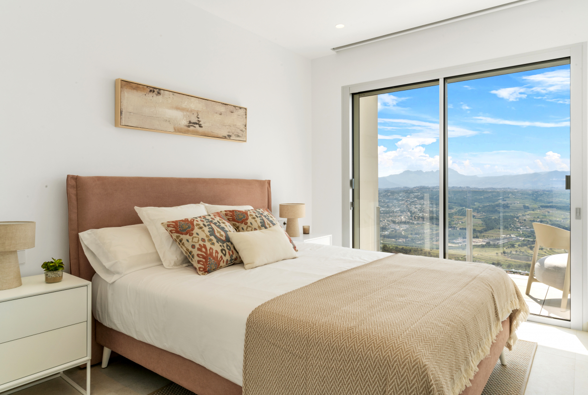 Villa Indigo has been designed for efficiency without sacrificing comfort: featuring air conditioning systems with a heat pump, underfloor heating, ventilation with heat recovery, solar panels and pre-installation for an EV charging point. All made with high-quality materials and finishes that underline its contemporary style.