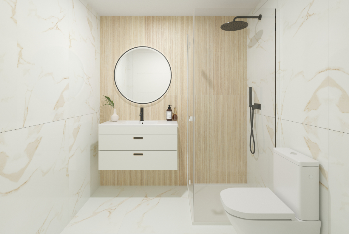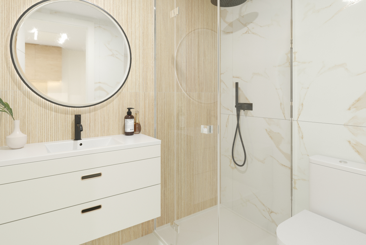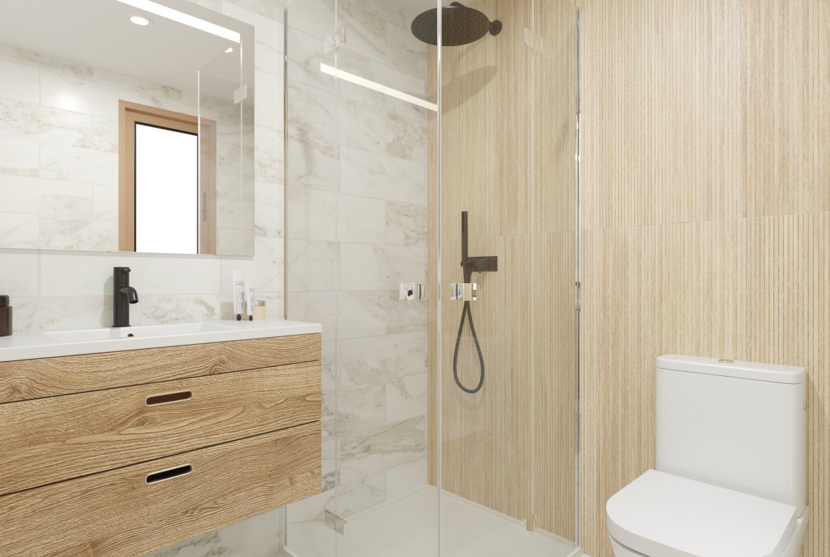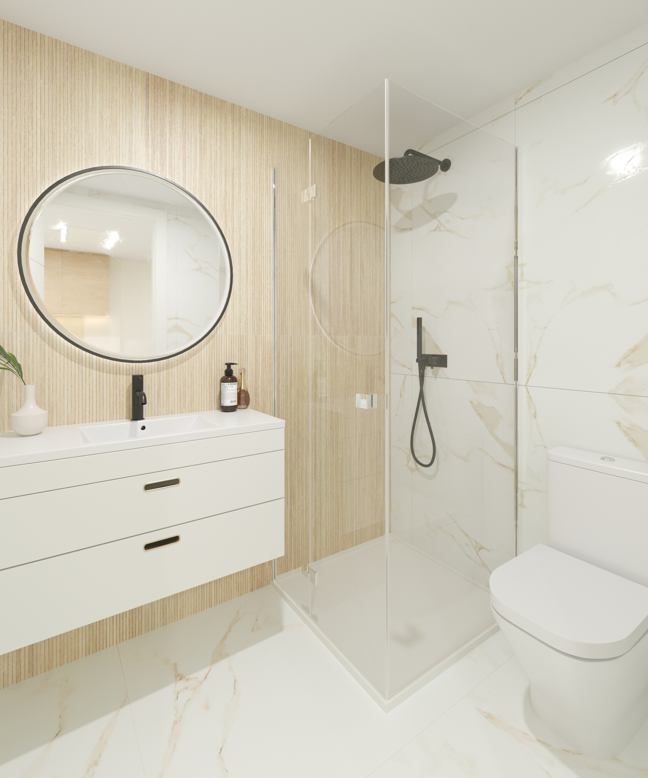 El Residencial ofrece modernas villas adosadas de 2 y 3 dormitorios y 3 baños, con un solárium privado de 32,60 m², ideales para disfrutar del sol mediterráneo durante todo el año.