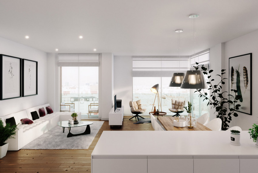 Los apartamentos tienen 3 o 4 dormitorios, 2 baños, una cocina integrada y un balcón.