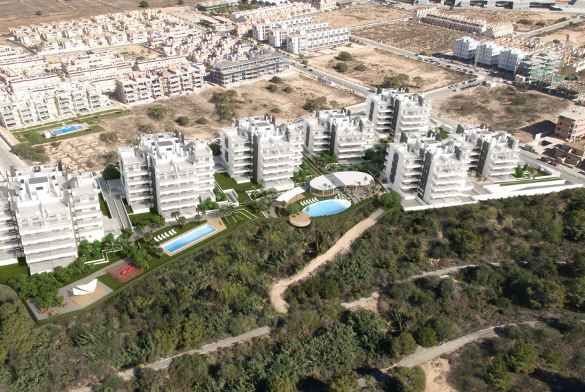 Complejo de estilo moderno con apartamentos de 2,3 dormitorios y 2 baños con amplísimas terrazas y fabulosos soláriums.