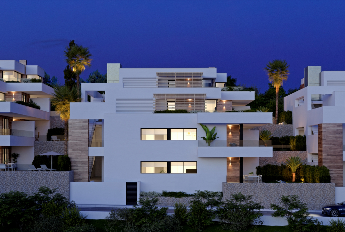 Apartamentos con una arquitectura moderna, de 2 dormitorios y 2 baños, cocina abierta al salón comedor, con varios modelos entre los que elegir;