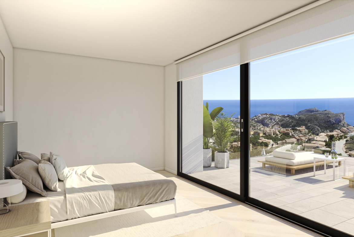Su arquitectura moderna, de líneas rectas y materiales nobles, se adapta al desnivel del terreno y multiplica las vistas con grandes ventanales y terrazas que se asoman al horizonte. En el interior, los espacios están concebidos para fluir con naturalidad. La planta principal alberga una zona de día abierta y luminosa, donde se integran cocina, comedor y salón. Los 4 dormitorios, 3 situados en la planta alta y el dormitorios principal ubicado en la planta media, ofrecen privacidad y vistas abiertas al mar. Esta vivienda dispone de un gran porche en la planta baja, que se puede destinar a varios usos, como gimnasio, despacho, chillout, lo que más le guste a su futuro propietario.